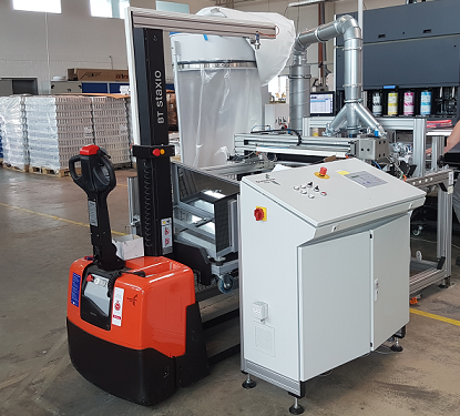 The longitudinal and cross cutter takes the paper or film web, e.g., from a printing press. The web is cut to the desired format and automatically stacked. Waste strips are automatically suctioned off, shredded, and disposed of.