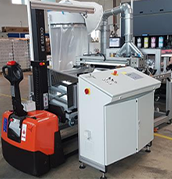 Auch als Formatschneider wird der Flexwinder gebaut. Er besteht dann aus einer Längs- Querschneider-Bearbeitungsstation und einem Abstapler.